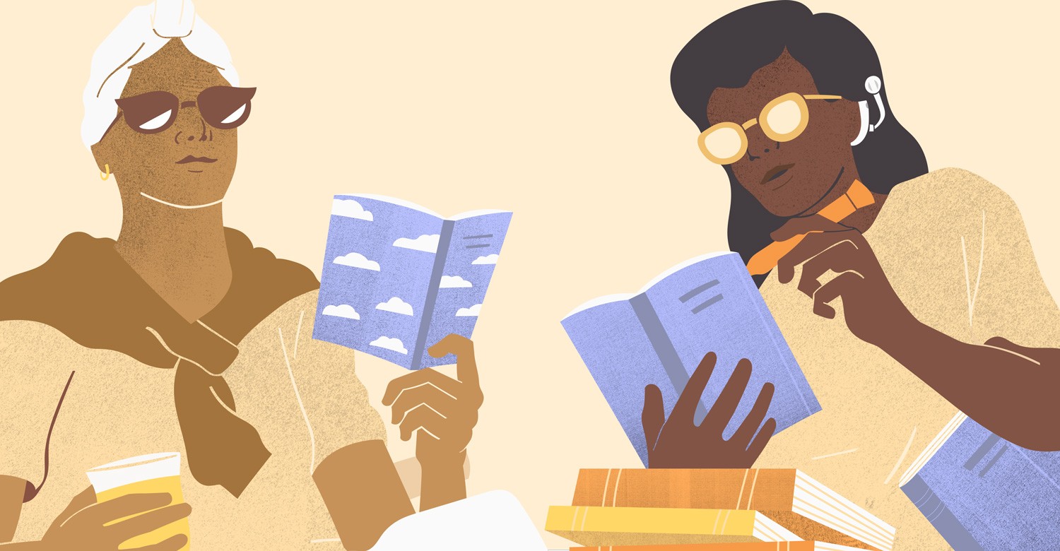 The idea I pitched featured characters reading under a large umbrella in the sun. However, the team desired a layout with more flexibility for typography and a way to highlight the characters more. With some final adjustments, we settled on a close-up of summer readers enjoying their books in the sun.