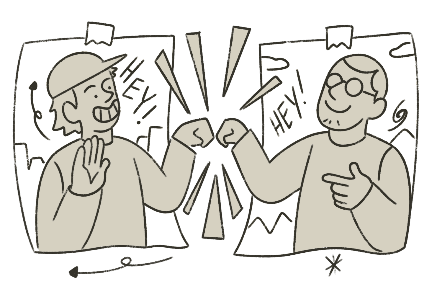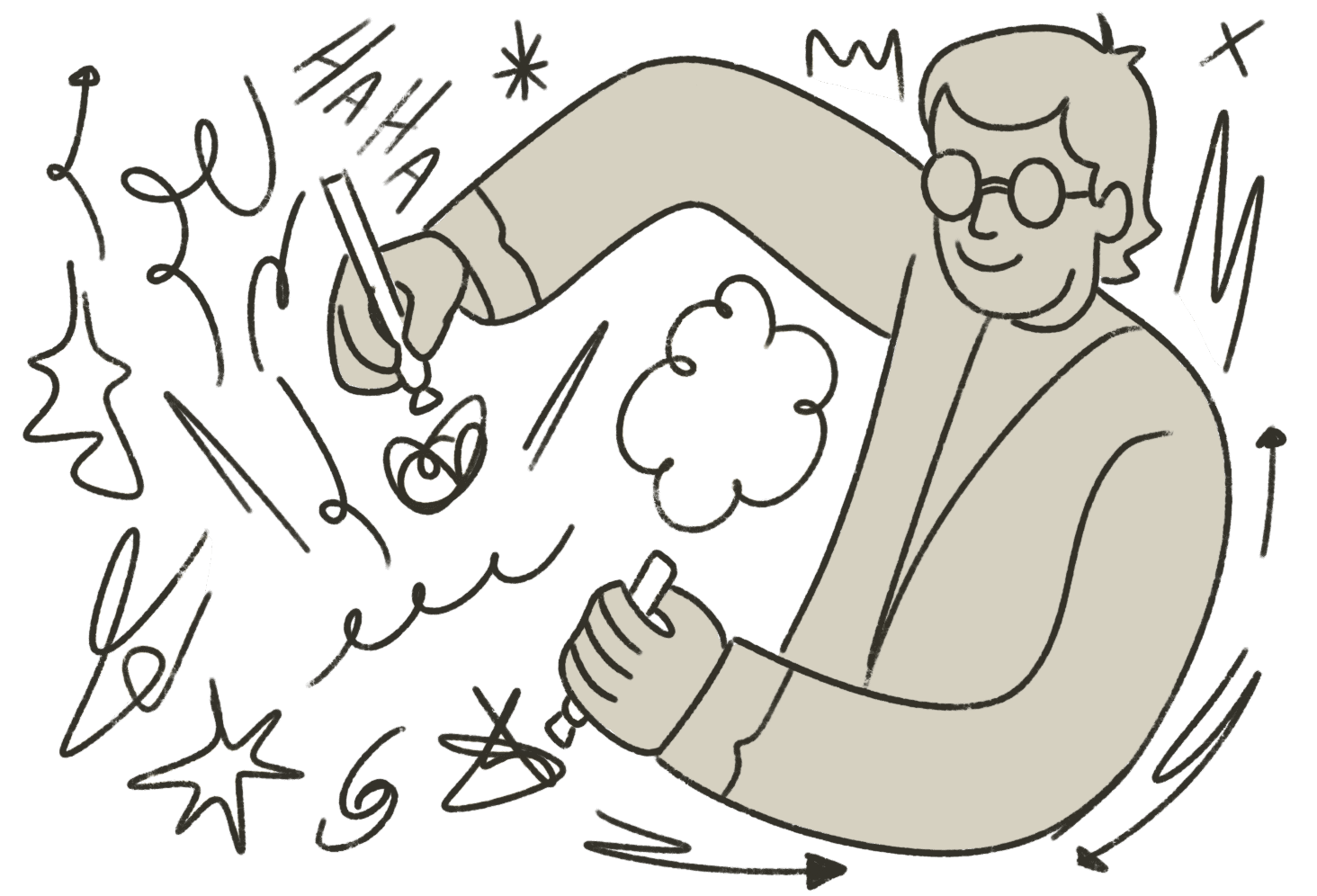 This approach aims to infuse the work with a friendly aesthetic, resonating more with the imperfect lines of a ballpoint pen than the precision of a vectored outline.